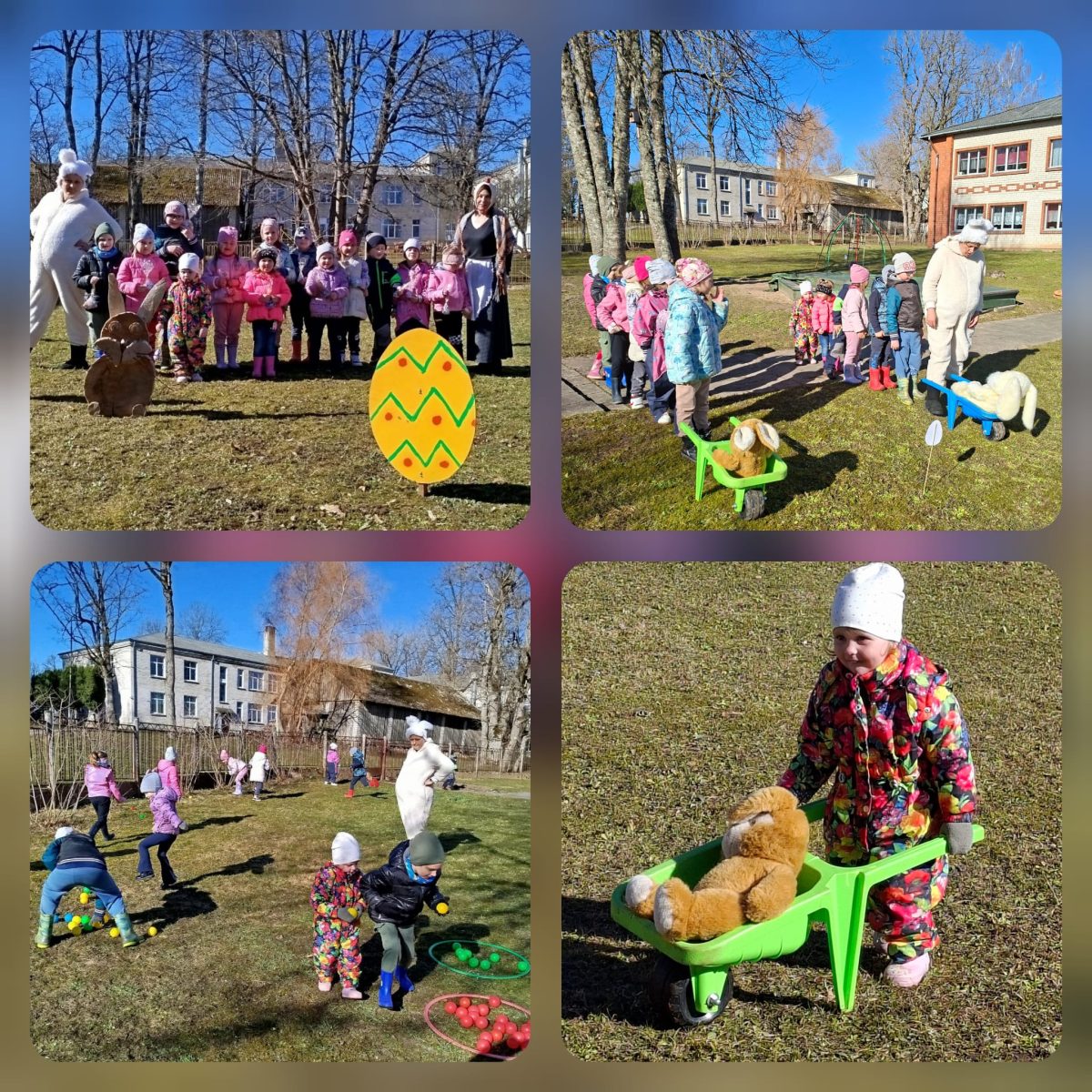 2. aprīlī Pirmsskolas grupas “Rūķītis” bērni kopā ar Draisko zaķi un Gudro vistu sagaidīja Lieldienas. Ar prieku visi piedalījās sporta aktivitātēs, ripināja olas, meklēja zaķa pazaudētās šokolādes oliņas.