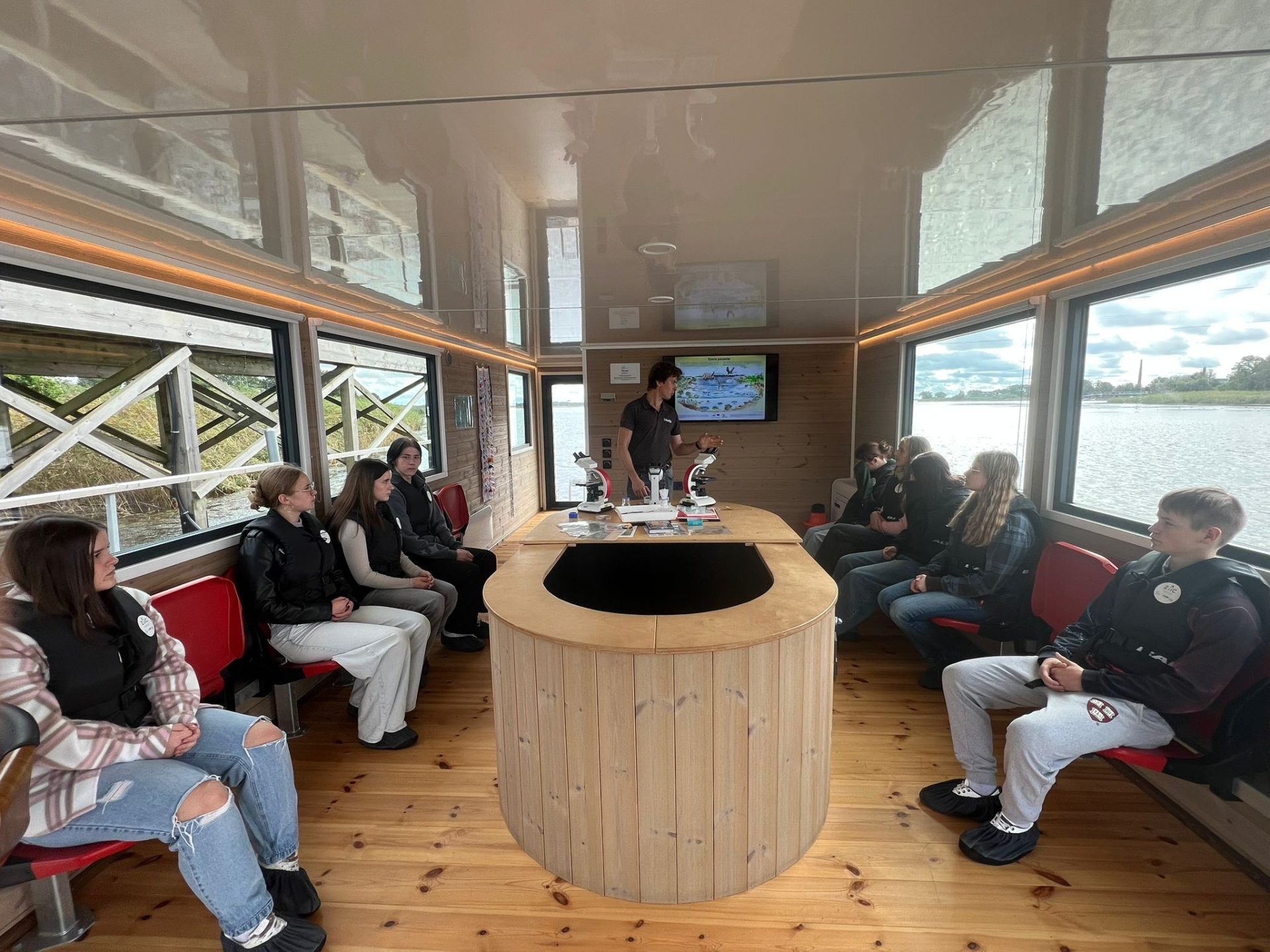 15. septembrī 9. klase, 7. klase un daži 5. klases skolēni devās ekskursijā uz Liepāju. Lielajā Dzintarā skatījāmies mūziklu “Klase”, kurā galvenās lomas spēlēja mūziķi – Kato, Miks Galvanovskis, Dagnis Roziņš. Mūzikls bija ļoti mūsdienīgs un aizraujošs. Paldies projektam “Latvijas Skolas Soma” par doto iespēju! Vēl apmeklējām Liepājas ZIIC Dabas māju Zirgu salā, apskatījām tur izvietoto ekspozīciju. Ļoti interesants bija brauciens ar kuģīti Akvalab. Braucām pa Liepājas ezeru, mērījām ezera dziļumu, grābām ezera gultni, meklējām tur dzīvojošās dzīvās radības. Likām zem mikroskopa un pētījām. Ar binokli skatījāmies ezera putnus. Brauciens bija aizraujošs un interesants! Paldies par doto iespēju!