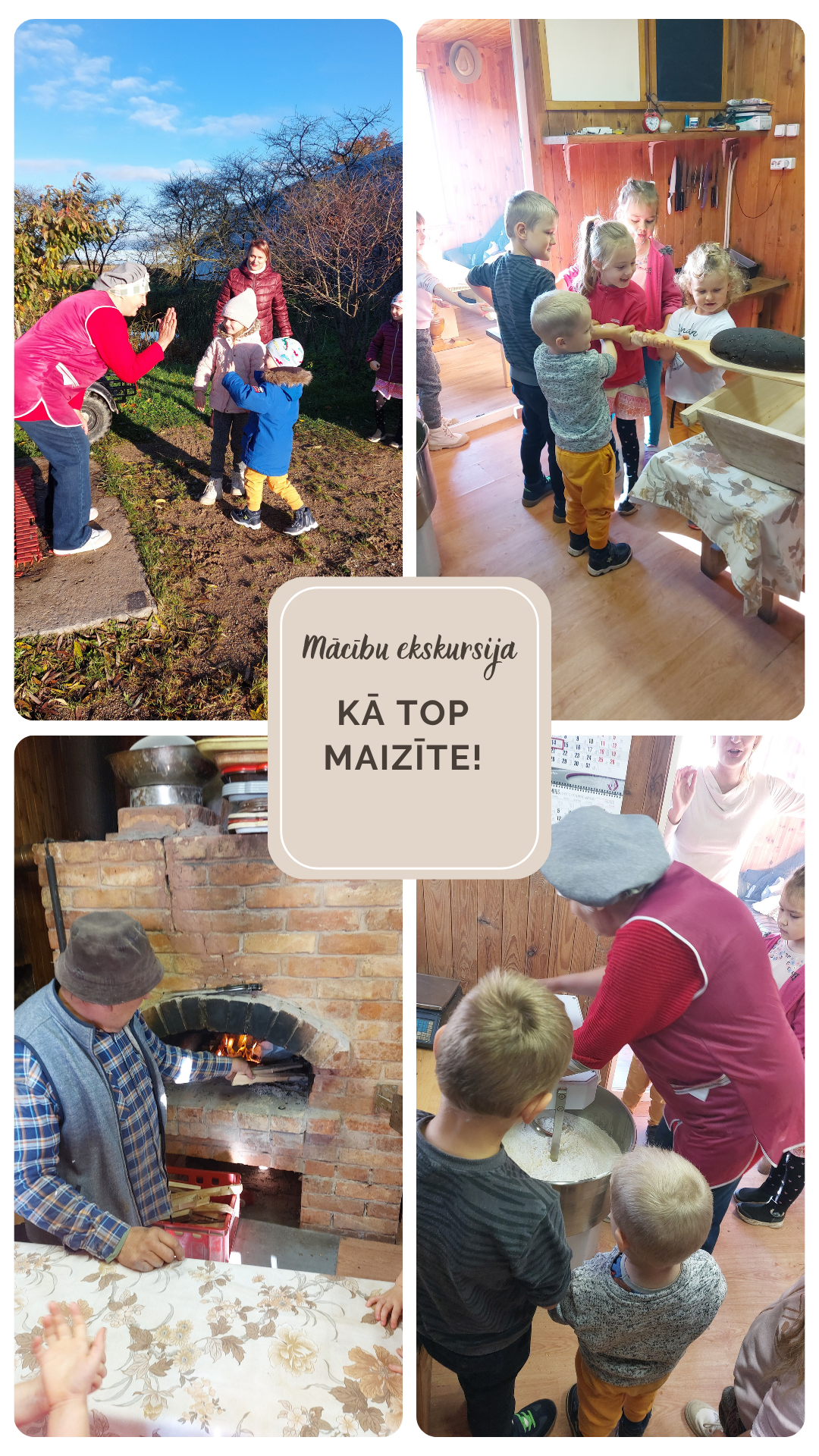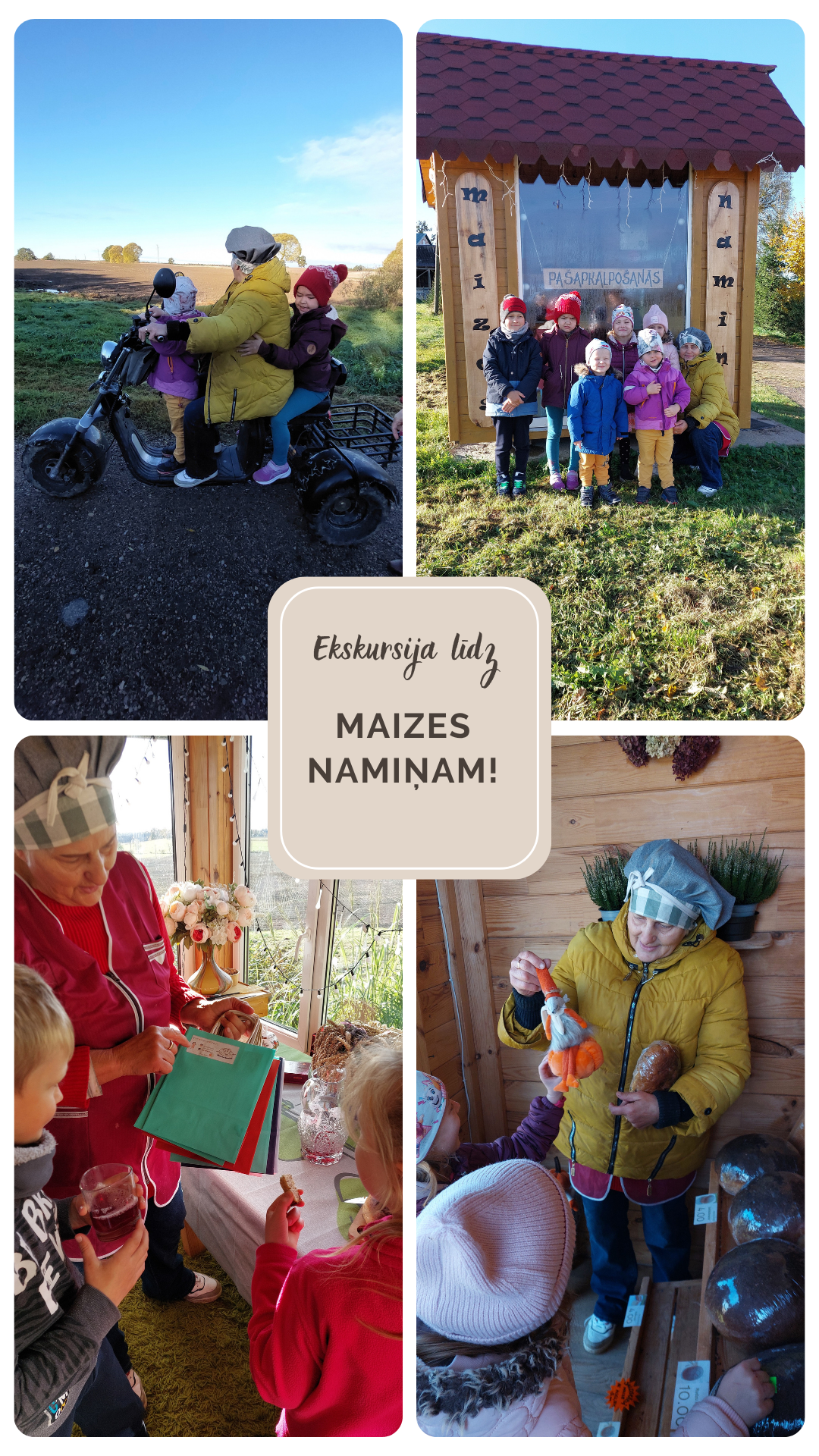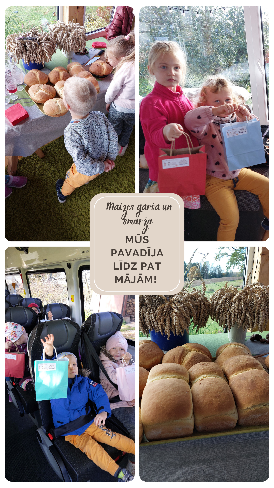 14.oktobrī pirmsskolas izglītības grupa “Sprīdīši” devās mācību ekskursijā pie vietējiem maizes cepējiem Ausmas un Aivara, lai iepazītos ar maizes cepšanas procesu un cepēju ikdienu. Bērni ar lielu interesi vēroja, kā top maize – no mīklas sagatavošanas līdz gardajam, smaržīgajam klaipiņam. Cepēji iepazīstināja mazos viesus ar dažādām maizes šķirnēm, kā arī stāstīja par senajām tradīcijām un mūsdienu cepšanas veidiem. Īpašs piedzīvojums bērniem bija izbrauciens ar elektro mobīli, kas palīdz pārvietot karstās maizes no krāsns līdz Maizes namiņam. Vizītes laikā valdīja prieks, smaidi un liela aizrautība. Paldies saimniekiem Ausmai un Aivaram par sirsnīgo uzņemšanu un īpašo sagaidīšanu!