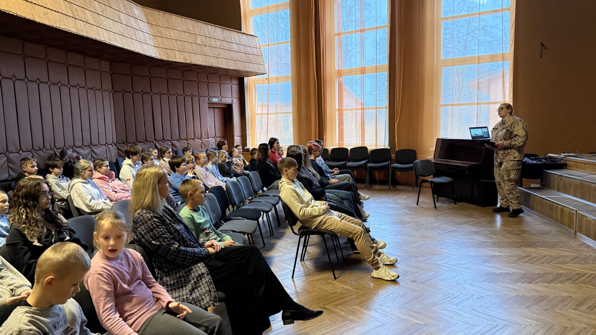 Lekcijas laikā tika pastāstīts par Latvijas aizsardzības struktūrām (NBS, Jūras spēki, gaisa spēki, sauzemes spēki, zemessardzi, kā arī izglītības iespējām Aizsardzbas akadēmijā, O.Kalpaka profesionālajā vidusskolā), pastāstīts tika arī VAM(Valsts aizsardzības mācību) un jaunsardzi.