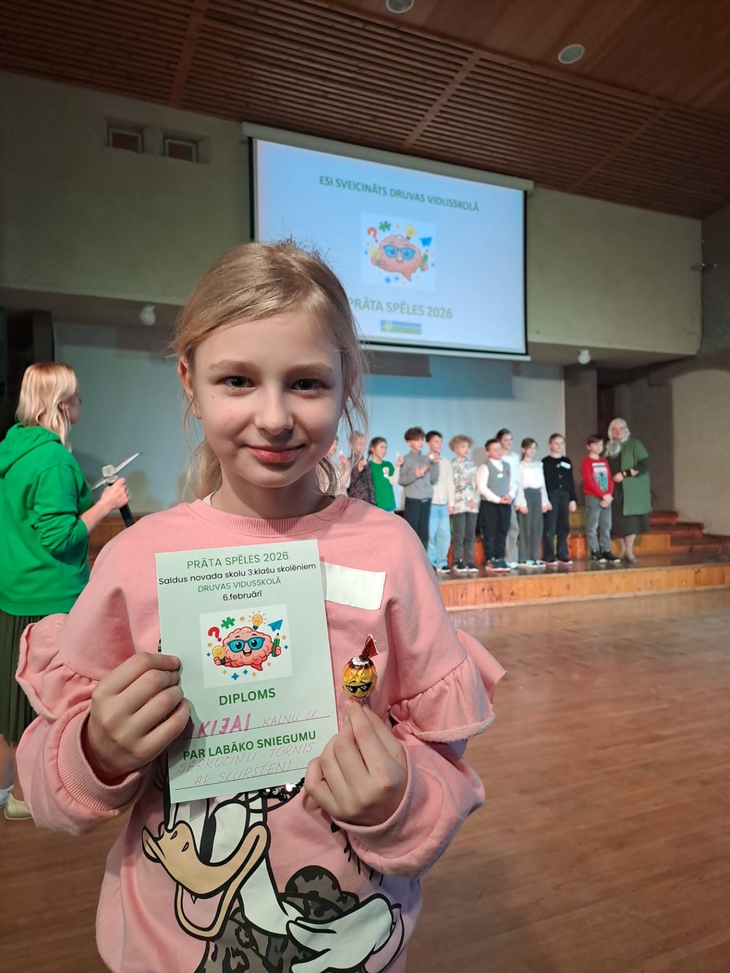 6. februārī 3. kases skolēni piedalījās ,,Prāta spēlēs 2026″, kuras tradicionāli notiek Druvas vidusskolā. Skolēni tika sadalīti 12 komandās, kurām bija jāveic 12 dažādi uzdevumi. Lai uzdevumus veiktu komandām bija jāprot sadarboties, jāprot izmantot loģisko domāšanu un jābūt pacietīgiem, radošiem. Nikija Gabriela Ovčenkova saņēma individuālo diplomu par radošo pieeju sērkociņu torņa būvēšanā.