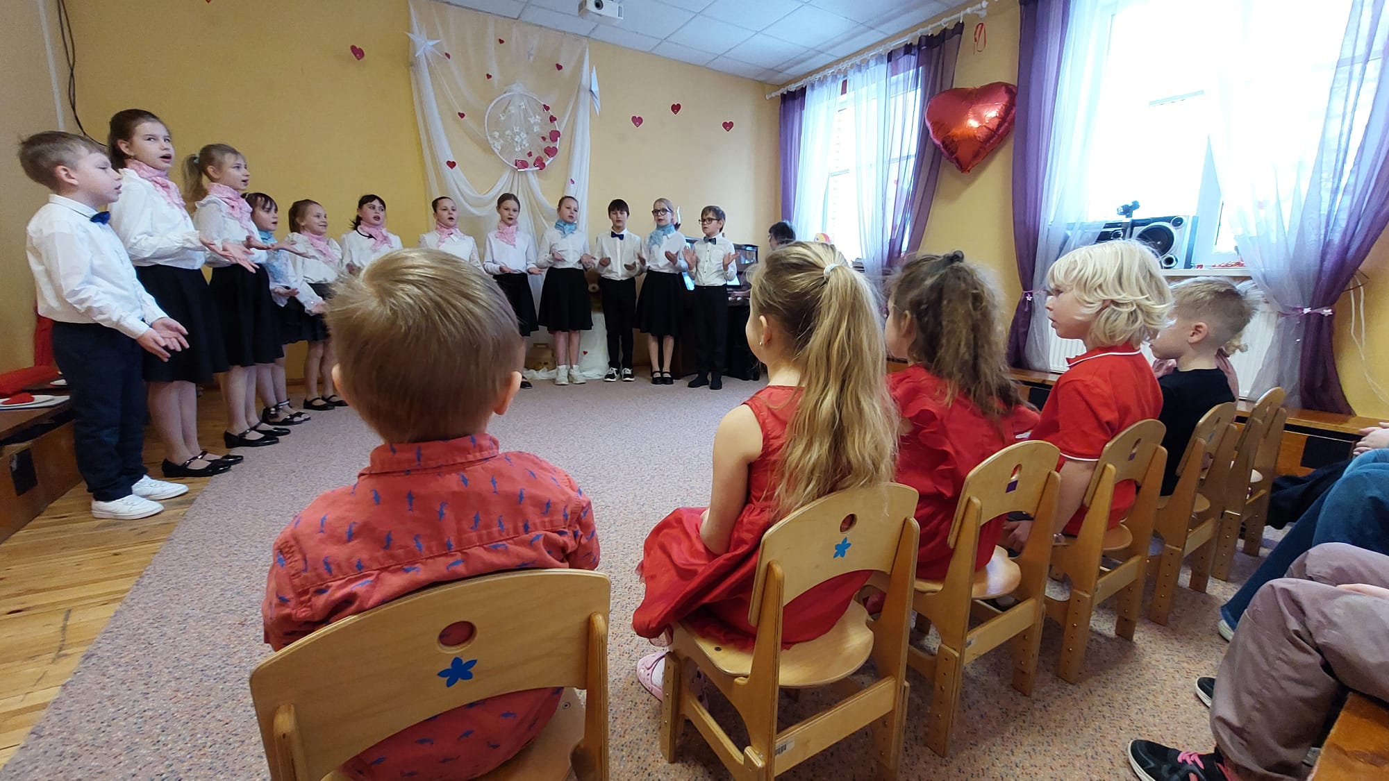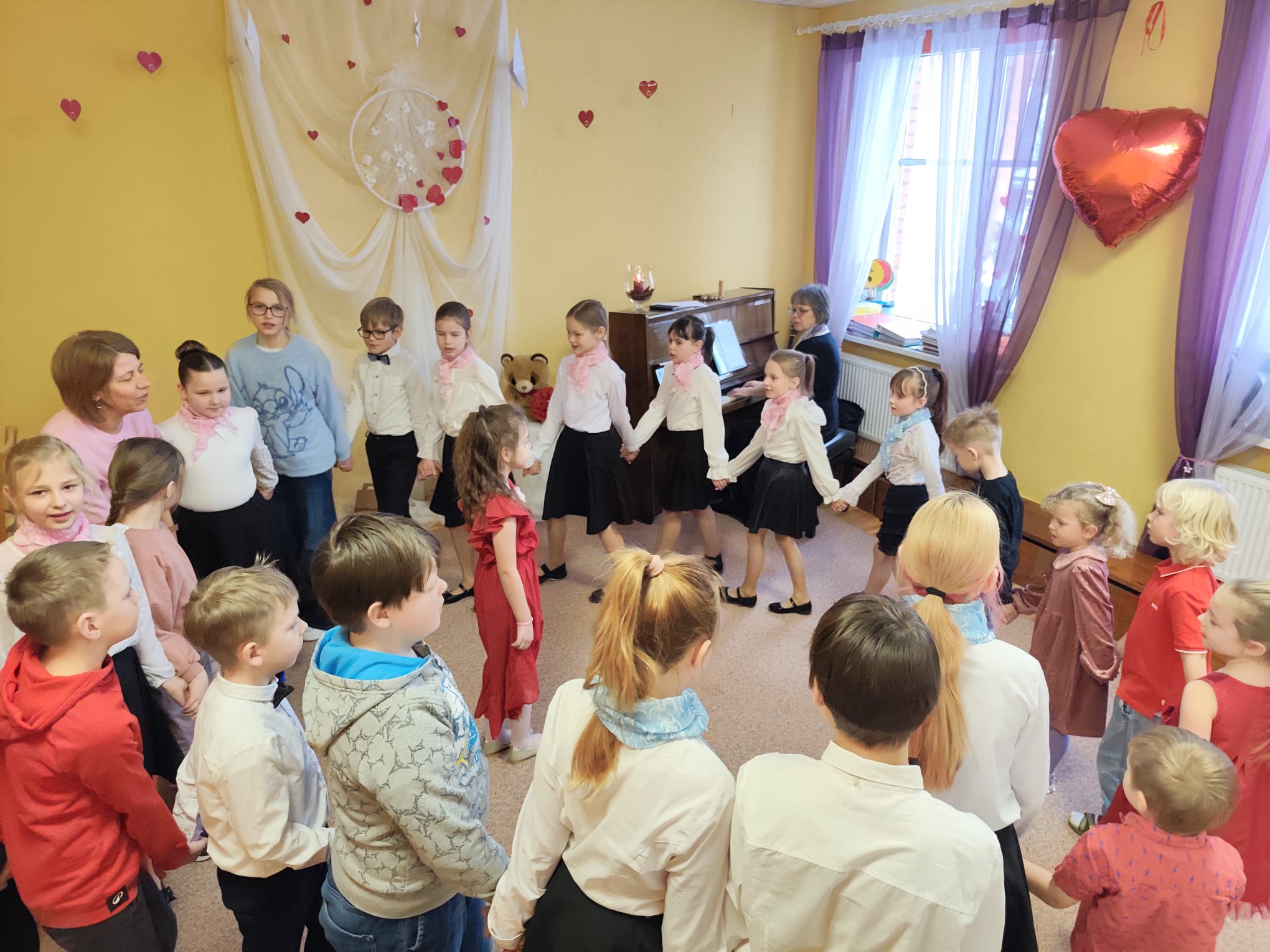 Valentīndienā, 13.februārī, pirmsskolas grupā “Sprīdīši” valdīja īpaši sirsnīga un priecīga noskaņa. Pie mums viesojās skolas vokālais ansamblis, kas sniedza skaistu trīs dziesmu koncertu, iepriecinot gan mazos, gan pieaugušos klausītājus. Pēc koncerta visi kopā iesaistījāmies jautrās rotaļās, radot patiesu svētku sajūtu. Kad viesi devās prom, “Sprīdīši” turpināja svinēt ar dažādām aktivitātēm – bērni meta sirsniņas mērķī, izmēģināja riņķu un šautriņu mešanu, kā arī piedalījās jautrajā spēlē “Vardes bučas”, saņēma Valentīndienas vēstules un mazu kārumu! Dienu piepildīja smiekli, draudzība un sirsnīgi mirkļi.