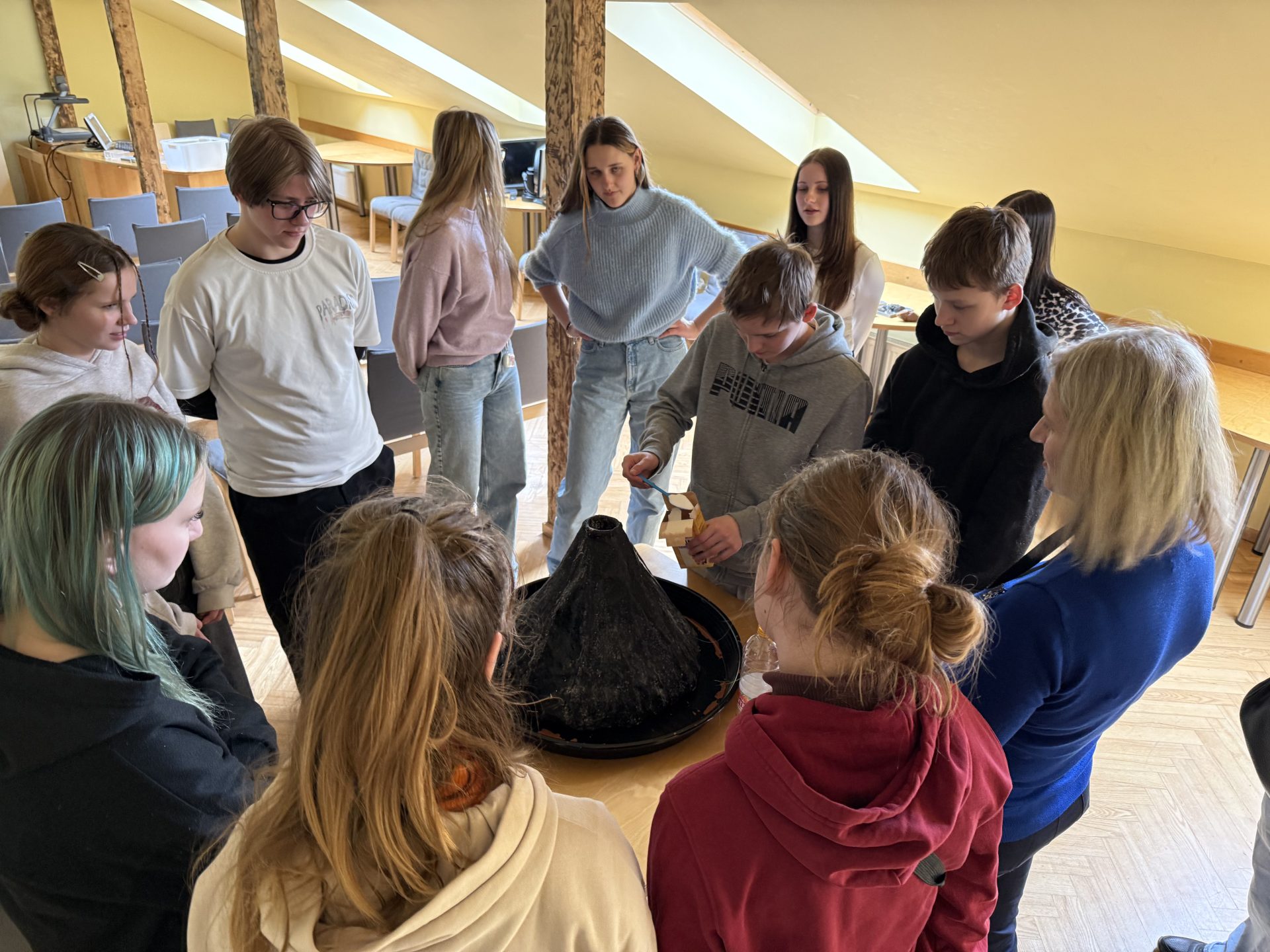 ESF+ projekta “STEM un pilsoniskās līdzdalības norises plašākai izglītības pieredzei un karjeras izvēlei” ietvaros 7. un 9 klašu skolēni 25. martā devās uz Rīgu, kur apmeklēja Latvijas nacionālo dabas muzeju. Dienu sākām ar nodarbību “Vulkānisms un tā izpausmes”. Nodarbībā noskaidrojām, kas ir vulkāni, kā tie ir veidojušies un kā darbojas, kādi ir vulkānu izvirdumu veidi un kāda ir bijusi to nozīme cilvēku dzīvē? Aplūkojām dažādus vulkāniskos iežus, un veicām divus eksperimentus. Pēc tam izstaigājām dažādas muzeja ekspozīcijas. Vienā no ekspozīcijām bija arī pieminēti 3 jaunieši no Nīgrandes pagasta, kas bija atraduši fragmentu no mamuta ilkņa. Pēc muzeja mēs devāmies ekskursijā pa Vecrīgu. Apskatījām Brīvības pieminekli, Doma laukumu un Rīgas Domu, tad devāmies uz Saeimas ēku, Trīs brāļiem, Melngalvja namu un Latvijas okupācijas muzeju. Uzzinājām daudz ko jaunu par šīm vietām! 7. klases Jurim arī izdevās uzņemt bildi kopā ar vairāku pasaules boksa čempiona jostu ieguvēju Mairi Briedi!