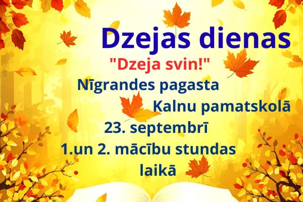 Šā gada 23. septembrī mūsu skolā norisinājās kārtējās Dzejas dienas. Šogad ar devīzi “Dzeja svin!” skolēni darbojās dažādās dzejas darbnīcās – atpazina dzejniekus un meklēja to darbus, sacerēja dzejoļus, zīmēja ilustrācijas – gan tradicionālas, gan 3D, izveidoja un uzstājās ar dzejoļa priekšnesumu, tika arī pie klases foto ar pašsacerētu moto. Radoši, daroši, droši un aktīvi…