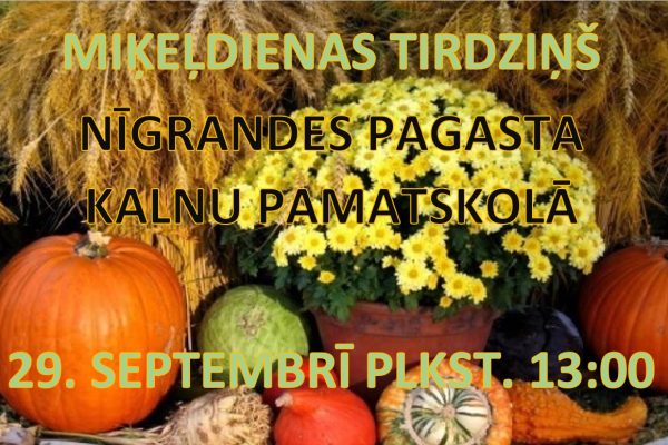 29. septembrī Nīgrandes pagasta Kalnu pamatskolā notika Miķeļdienas tirdziņš. Skolēni no mājām uz tirdziņu bija sanesuši tirgot dažādus labumus. Tirdziņā uzstājās arī leļļu teātris ar izrādi “Rudens tirgus”. Tirdziņa beigās visi bija priecīgi par jauniegūtajiem labumiem: gan ēdamām lietām, gan citādiem pārsteigumiem.