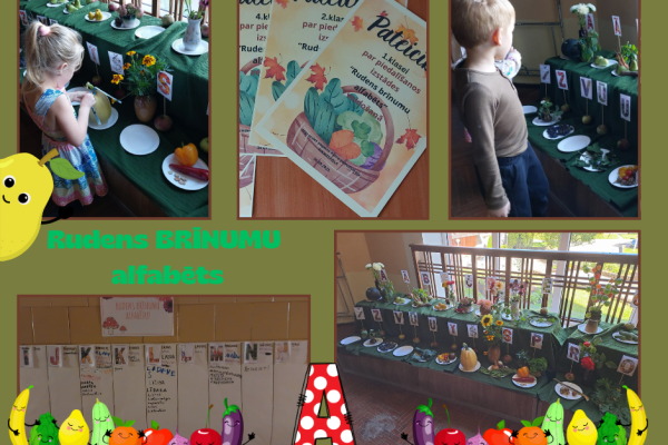 Skolā notika izstāde “Rudens BRĪNUMU alfabēts”. Bērni, tostarp arī pirmsskolas grupa, kopā ar skolotājiem pie katra burta izvietoja dažādus rudens augus un dabas veltes. Uz lielā plakāta tika pierakstīti vārdi, kas sākas ar attiecīgo burtu, veidojot krāsainu rudens vārdnīcu. Sirsnīgs paldies visiem bērniem, vecākiem un skolotājiem par radošo līdzdalību!